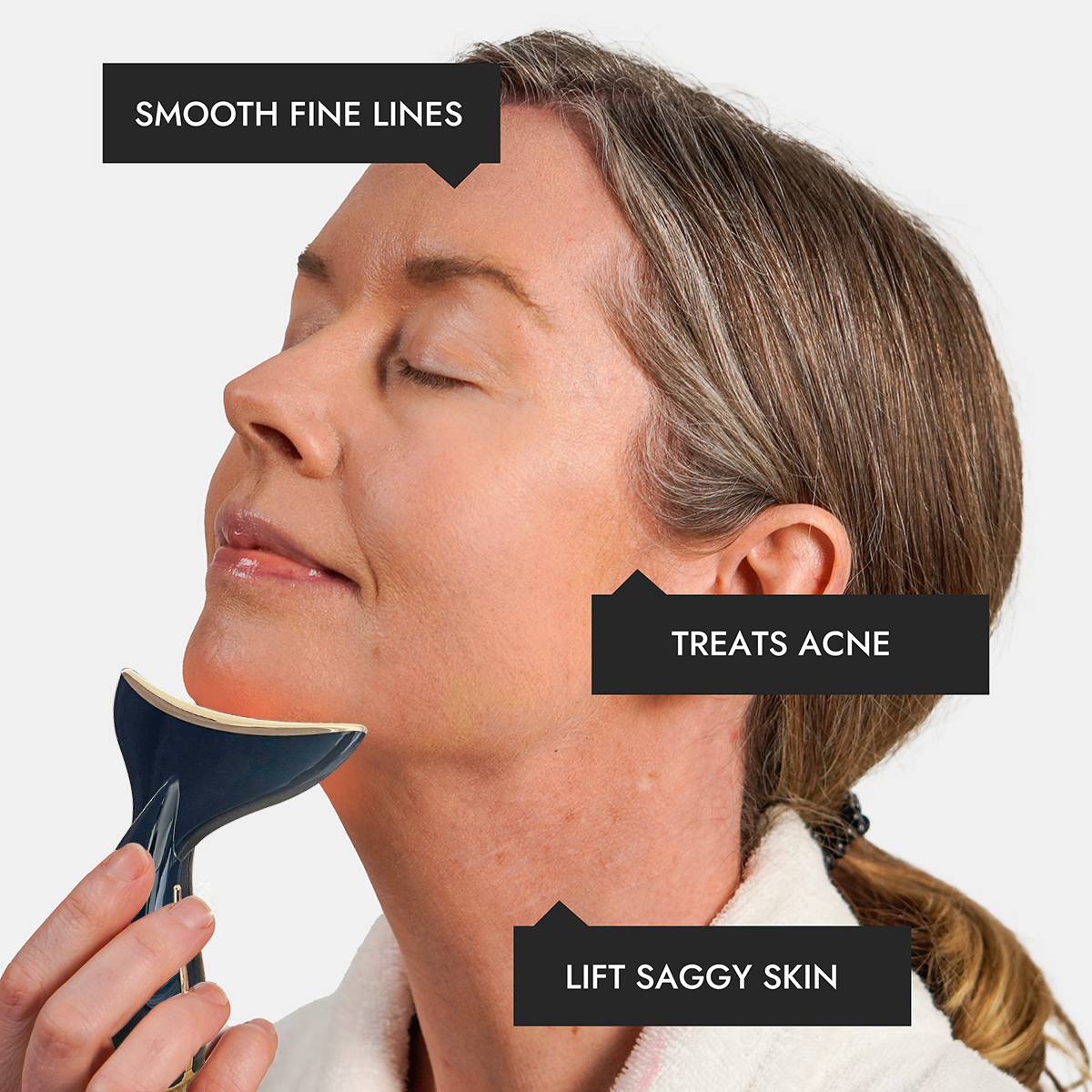Blue light has anti-inflammatory effect s that helps remove free radicals that oxidize and speed up aging for your face.
